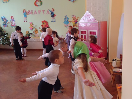 танцевали. А в средней группе утренник прошел по мотивам сказки «Федорено