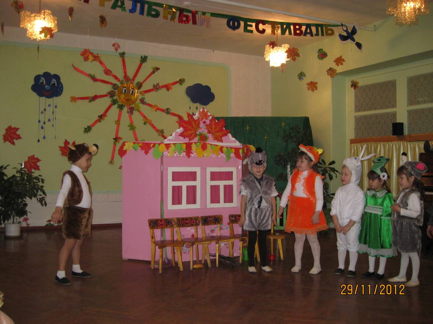 Дети средней группы «Семицветик» приняли сегодня активное участие в «Театральном фестивале». Они показали зрителями инсценировку сказки «Теремок». Воспитатель, Кузнецова Татьяна Яковлевна, очень ответственно подошла к мероприятию. Дети её группы