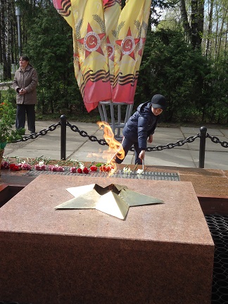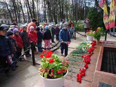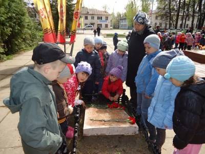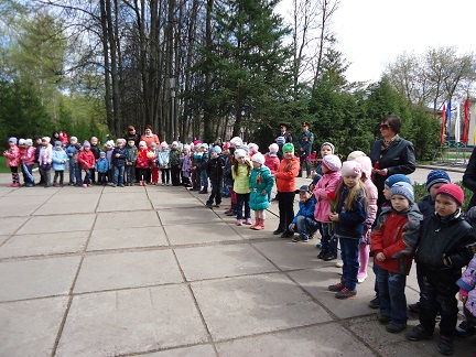 Воспитанники старших и подготовительных к школе групп детского сада посетили Вечный огонь по ул. Б.Хмельницкого. Дети гордо читали стихи, пели песни, отдавая дань уважения к павшим героям ВОВ. Все благодарны за жизнь, за солнце, за небо синее. Потом возложили цветы к братской могиле.