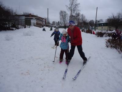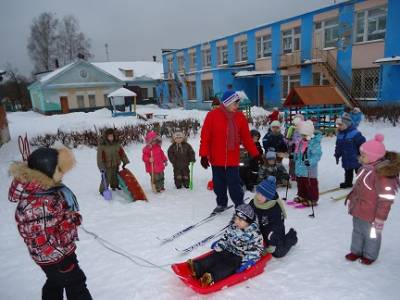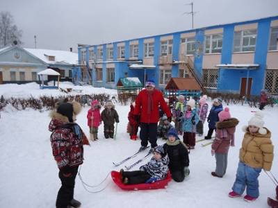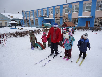 лыжные прогулки по территорию детского сада. Родители обеспечивают своих детей