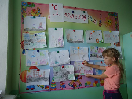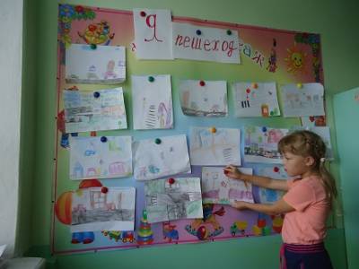 Сегодня 30 июня в группе «Считалочка» воспитатель Иванова Т.В. организовала выставку рисунков по дорожно-транспортной тематике. В начале мероприятия Татьяна Владимировна и дети вспомнили правила поведения пешеходов на улице, рассматривали различные ситуации, анализировали. Затем дети поиграли игру «Красный, желтый, зеленый». Игра детям понравилась, они были внимательными. В конце мероприятия дети нарисовали рисунки на тему: «Я пешеход». На прогулке решили сходить к пешеходному переходу около детского сада для закрепления ПДД.