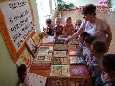 В детском саду педагоги организовали выставку детской литературы, посвященной 165-летию чувашского просветителя И.Я. Яковлева. Дети познакомились с детскими произведениями Ивана Яковлевича и узнали много нового о нём. Выставка будет работать в течении недели.