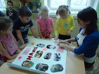 Новый праздник - День Матери - постепенно входит в наши российские дома. И это замечательно: сколько бы хороших и добрых слов мы не говорили нашим мамам, сколько бы поводов для этого ни придумали лишними они не будут. И мы воспитатели просто обязаны поддержать традиции бережного отношения, закрепить семейные устои, особо отметить значение в нашей жизни главного человека - Матери. Сначала мы попросили детей и пап (в тайне от мам) принести фото мам. И в группах оформили фотогазеты «Наши мамы». Дошкольники детского сада подготовили подарки для мам. Особенно выделились дети старшей группы "Б", которые сделали цветы для своих любимых мам. Они очень старались и создали коллективную композицию. Воспитатели и дети старшей группы "А" изготовили корзиночки с цветам.