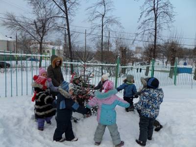 решили устроить праздник для маленьких ёлочек, которые растут у них на участке.