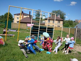 Сегодня на украшенной площадке, провели праздник Солнца, приуроченный ко Дню Защиты Детей. На празднике было много шуток, соревновательного задора. Детям было весело и интересно. На празднике развлекал детей клоун Капитошка. Он проводил с детьми интересные игры.