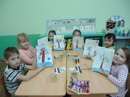 Сегодня по художественной деятельности ребята рисовали на тему «Иней на