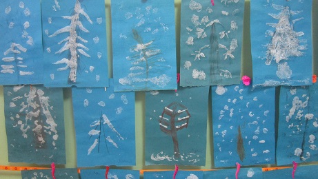 отразить в рисунках. В работе применялись нетрадиционные приемы рисования. Для начала дети на листах синей бумаги